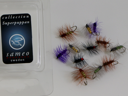Produktinformation Superpuppan är en klassisk svensk fiskefluga skapad 1970-talet. Flugan är designad för att imitera en kläckande nattslända – stadiet mellan puppa och vuxen insekt – vilket gör den mycket effektiv vid ytfiske. Superpuppan flyter delvis i vattenytan, med kroppen under och vingarna ovanför, något som lockar till sig vakande öring och harr. |